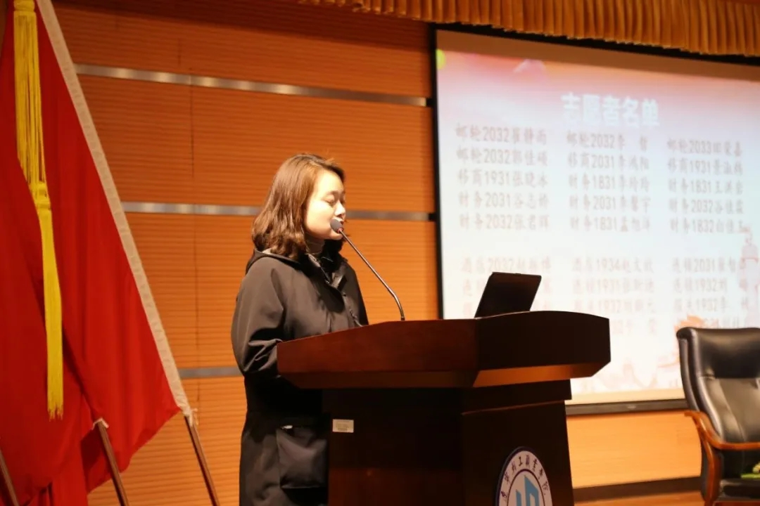 大会第二项:经贸管理系党总支副书记李芷逸老师宣读志愿者名单。