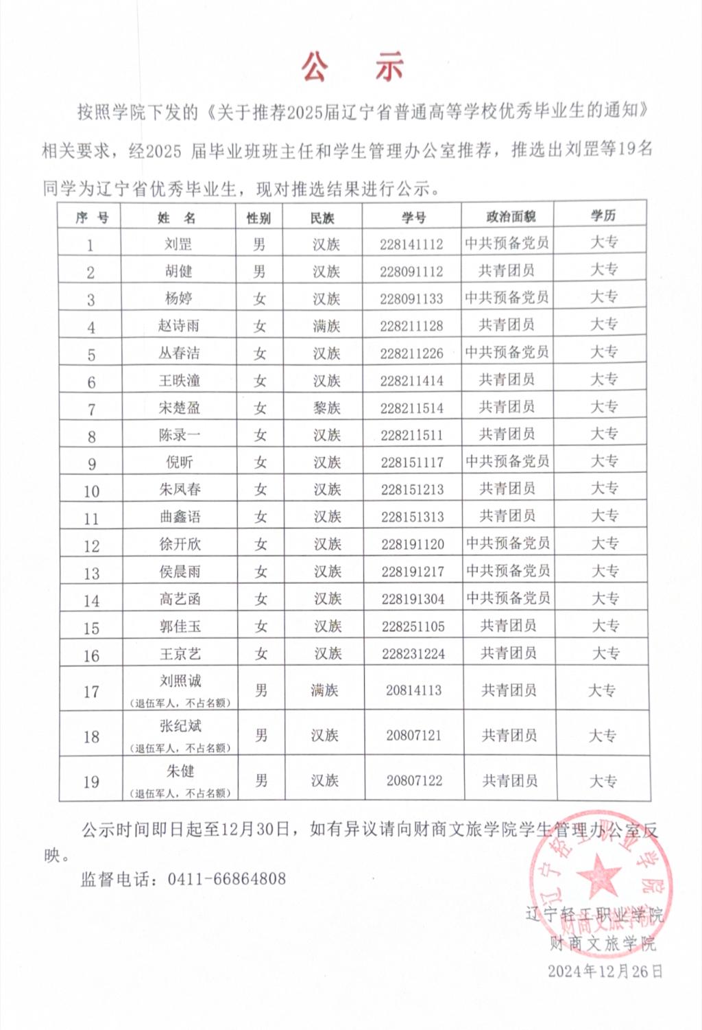 关于大连市2025届优秀毕业生评选结果的公示