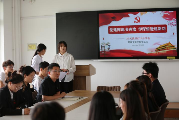 同学们分享结束后,王薪潭书记对此次活动进行点评,他希望同学们在这21天养成读书习惯,常与书为伴,读书会持续启迪和激励自己前行的步伐。鼓励同学们要始终保持蓬勃的朝气和昂扬的斗志,将读书化为力量,在实现中华民族伟大复兴的历程中,勇于担负起新时代老员工的责任,做到“读书增识,读书强己,读书兴邦”。