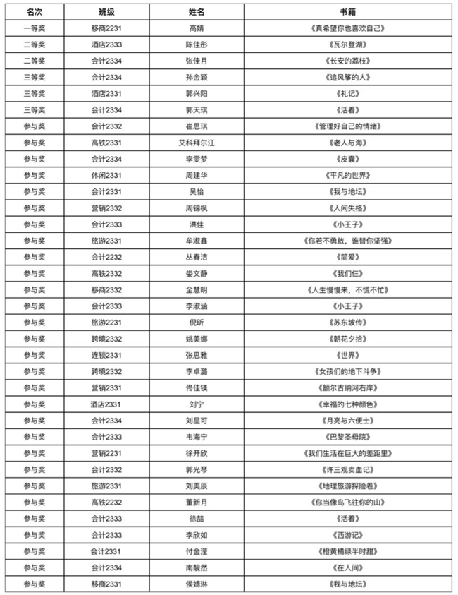 获奖名单
