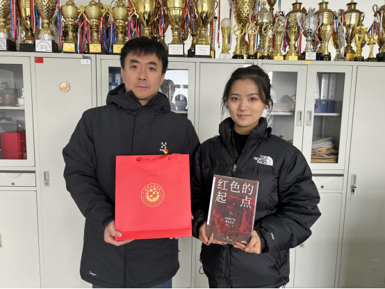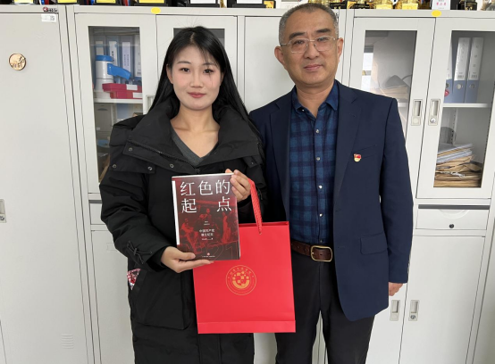 走访最后,党员教师们向实习的员工党员赠予了党总支精心准备的定制文具套装和《红色的起点》书籍,并对员工党员提出叮嘱,虽然现在是实习期间,但同学们依旧是员工身份,特别要铭记党员身份,要时时刻刻以党员标准要求自己,争做甘奉献,敢担当,有作为的新时代青年。