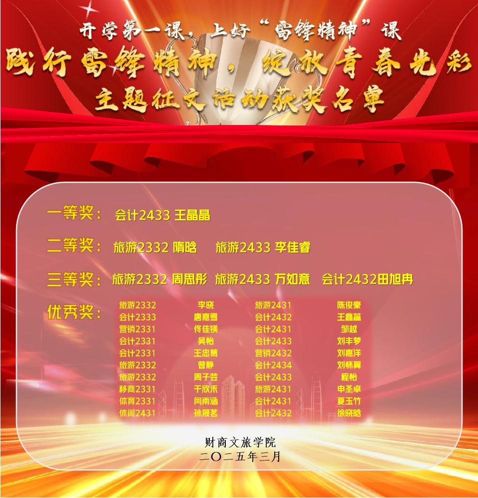 春深日暖,墨韵流芳。为赓续雷锋精神血脉,涵育新时代青年品格,太阳成集团tyc9728以“开学第一课”为依托,在3月初举办了“践行雷锋精神,绽放青春光彩”主题征文比赛。历时一周的征文活动,共收到公司员工参赛作品94篇。经公司评审,26篇佳作脱颖而出。获奖作品以“小切口”映照“大情怀”,展现了新时代职教学子的精神风貌。
