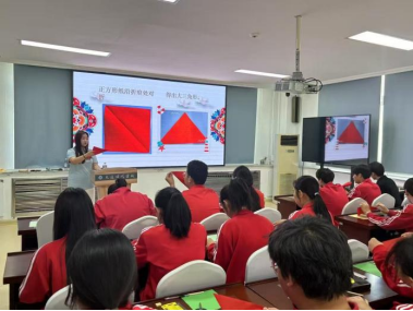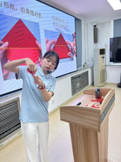 实践环节以“春天”为主题,分为传统剪纸和创意剪纸两个部分。工作室的同学耐心地手把手教学,从折纸技巧到纹样勾勒,从基础剪法到创意设计,一步步指导同学们。在这个过程中,同学们全神贯注,有的凝神屏息地剪刻纹样,有的热烈讨论着图案构思。大家充分发挥自己的想象力,有人将小鸟、花草等春天的元素融入剪纸,有人则创作出可爱的卡通形象,传统技艺与青春创意相互碰撞,擦出了别样的火花。
