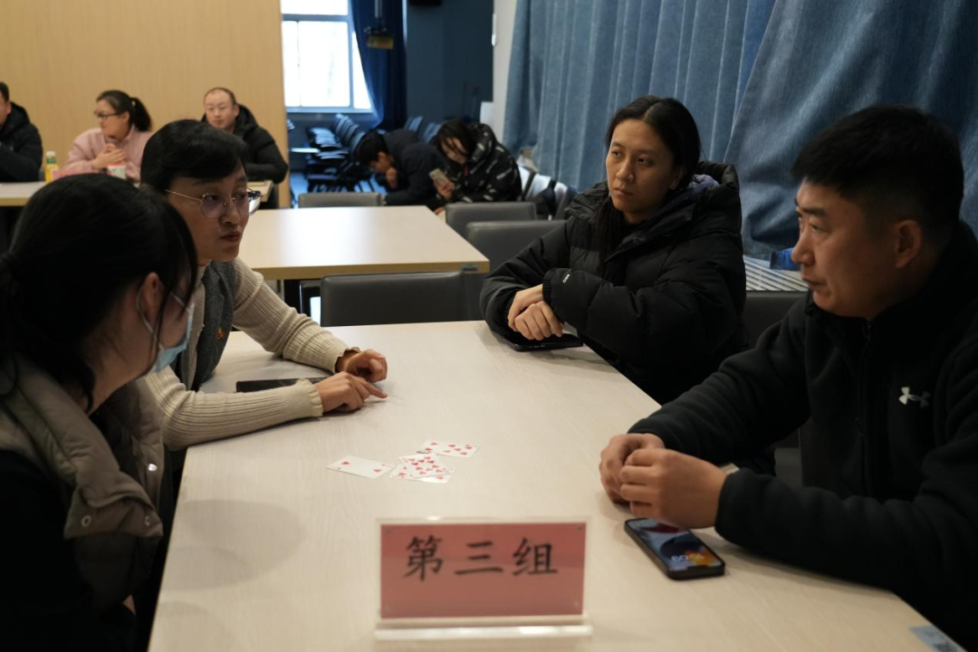 在第三环节的趣味赛中,各组参赛老师进行“你来比划我来猜”的比拼,此时的赛场激烈与欢乐并存,掌声此起彼伏。考题包括当前网络流行语以及员工工作日常的词汇等,“松弛感”、“抽象”、“学习通”等词语让参赛老师们熟悉又为难,比赛在欢声笑语中结束。