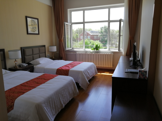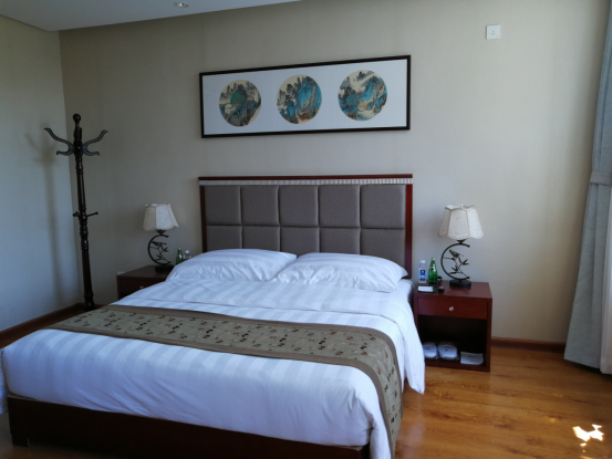 客房实训室面积约248平方米,可满足30名员工同时使用。实训设备包括:床、床头柜、电视柜、写字台、椅子、衣帽架、小茶几、沙发、行李柜、衣柜、电视机、落地灯、台灯、床头灯、热水器、空调、吹风机、毛巾架、厕纸架、马桶、垃圾桶、热水壶、床上备品、毛巾、浴巾、地巾、工作车、挂烫机、吸尘器、置物架、挂衣杆、晾衣架等。