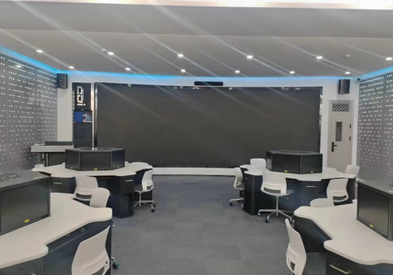 虚拟仿真实训室面积约260平方米,可满足72名员工同时使用。内设备配置齐全,拥有多媒体教学设备、台式计算机、新媒体运营平台、虚拟现实头戴显示设备、工作站、交换机、多人协同适配软件、VR教学资源管理平台、桌面VR交互一体机、虚拟现实创作软件等操作设备。